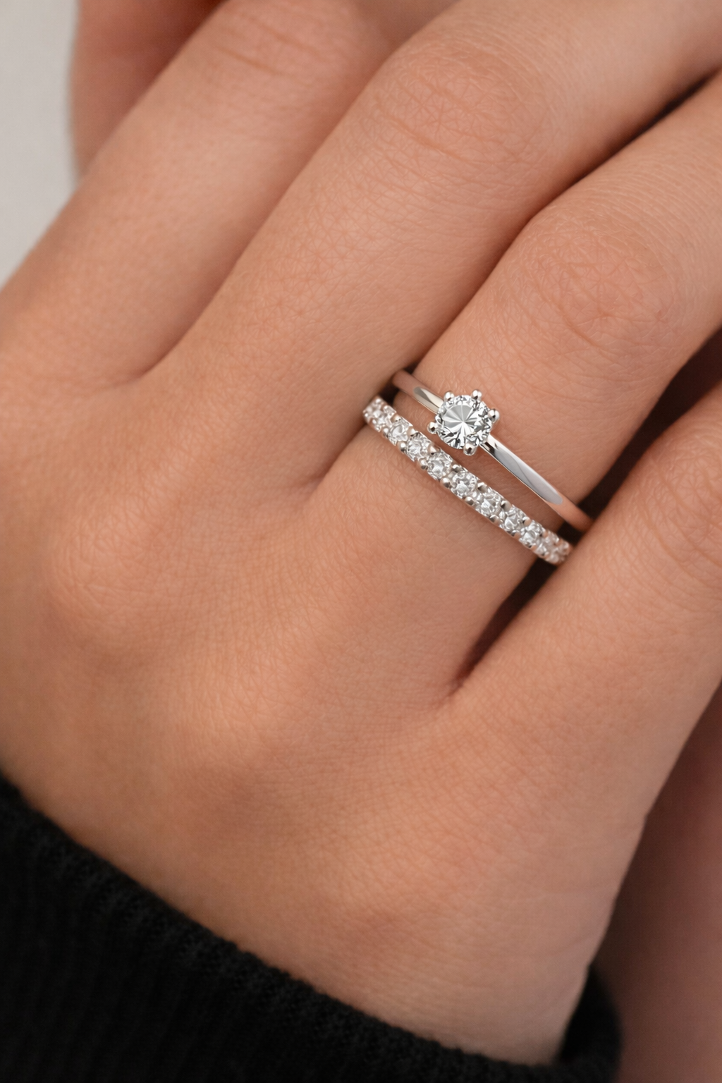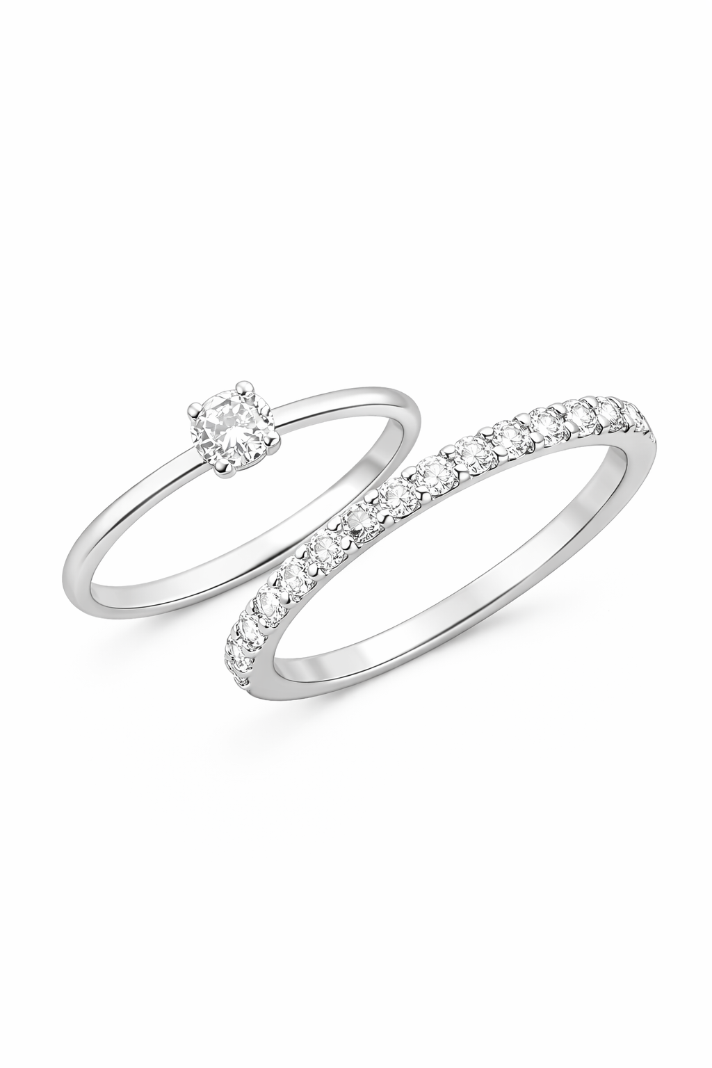 Anel duplo, solitário e aparador cravejado